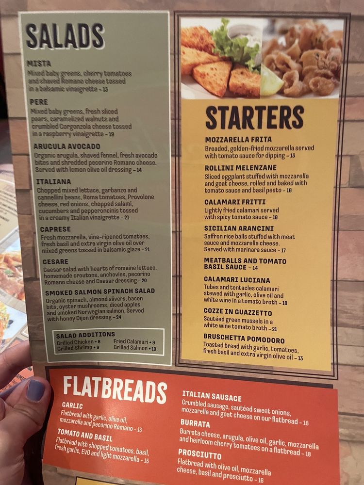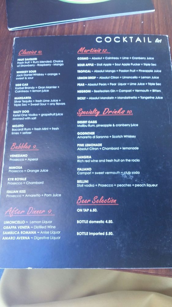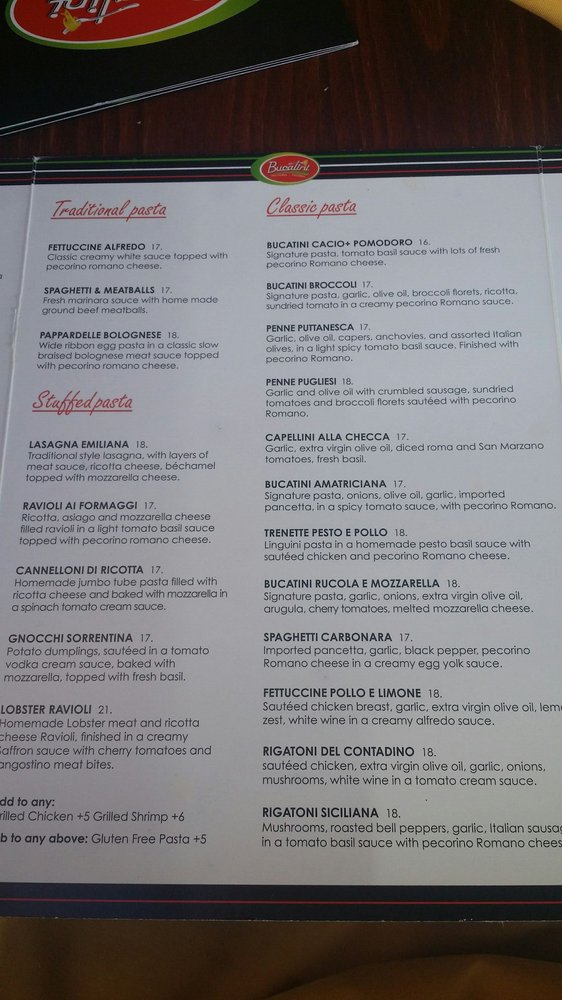 Introducing the menu at Bucatini Trattoria, a cozy Italian spot located in Palm Desert, CA. This casual restaurant offers a variety of traditional Italian dishes, with a focus on pizzas. Starters like the flavorful Bruschetta Flatbread and crispy Calamari Fritti are sure to whet your appetite. For salad lovers, the fresh Caprese with mozzarella and tomatoes is a standout choice. Indulge in classic pasta dishes like Fettuccine Alfredo or Spaghetti & Meatballs, prepared with homemade sauces and topped with pecorino Romano cheese. The menu also includes a variety of vegetarian options and gluten-free choices. With its inviting atmosphere and excellent service, Bucatini Trattoria is a fantastic spot for a casual lunch or dinner. Don't miss out on their Happy Hour specials and full bar offerings. Whether you're looking to enjoy a meal with friends or family, this restaurant has something for everyone to enjoy.